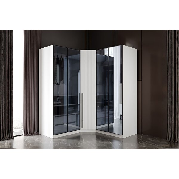Doressa Home Tins 5 Kapılı Camlı Köşe Gardırop