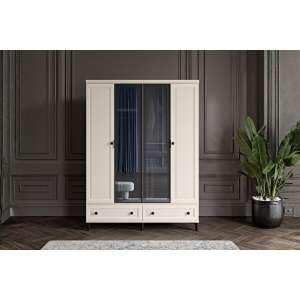 Doressa Home Zare Moon 4 Kapılı Camlı Gardırop