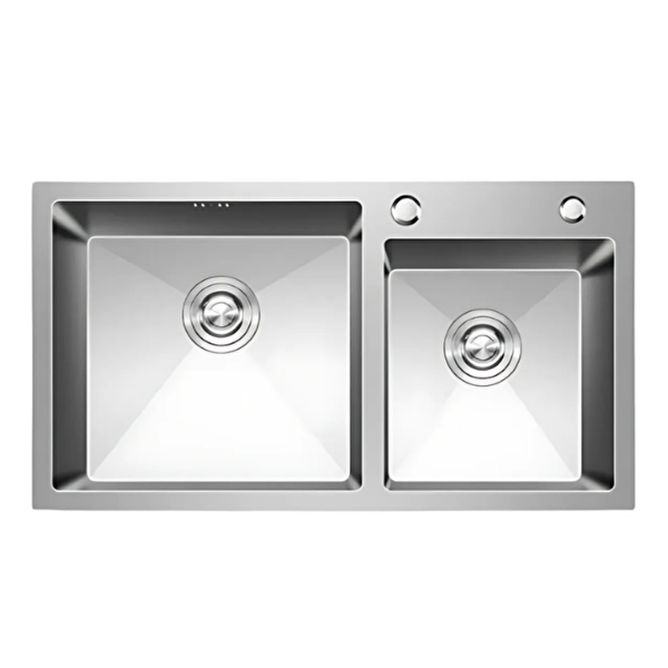 Ölçü:76x45cm Büyük göz ölçüsü: en:40cm -boy:38cm Küçük göz ölçüsü: en:35cm -boy:30cm Derinlik: 22cm Kalınlık: 3mm + 0,8mm + ses yalıtımlı Montaj Şekli: Tezgah Üstü - Tezgaha Sıfır montaja uygundur. Radius: R10 Materyal Kalitesi: SUS304 Paslanmaz Çelik Yüzey: Parlak paslanmaz çelik yüzey Renk seçenekleri: Inoks, Siyah Dahili aksesuarlar: Deterjanlık pompası ve haznesi, Süzgeçli, kapaklı (koku vermeyen) sifon seti dahildir.