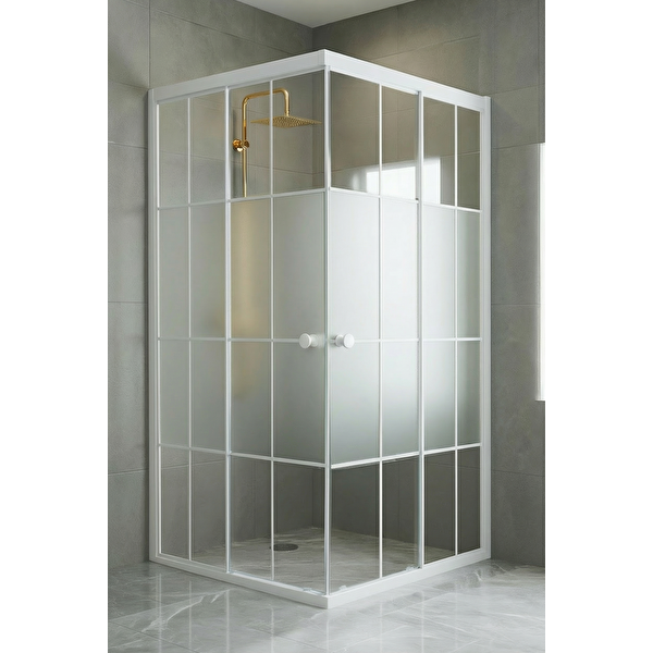 Durul Duşakabin Kare Beyaz Çizgi Ortası Buzlu - Ölçü : 115x115 Cm 115x115 cm
