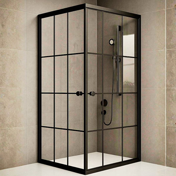 Durul Duşakabin Kare Siyah Profil Siyah Çizgi Şeffaf 4mm Temperli Cam Yükseklik 180 cm