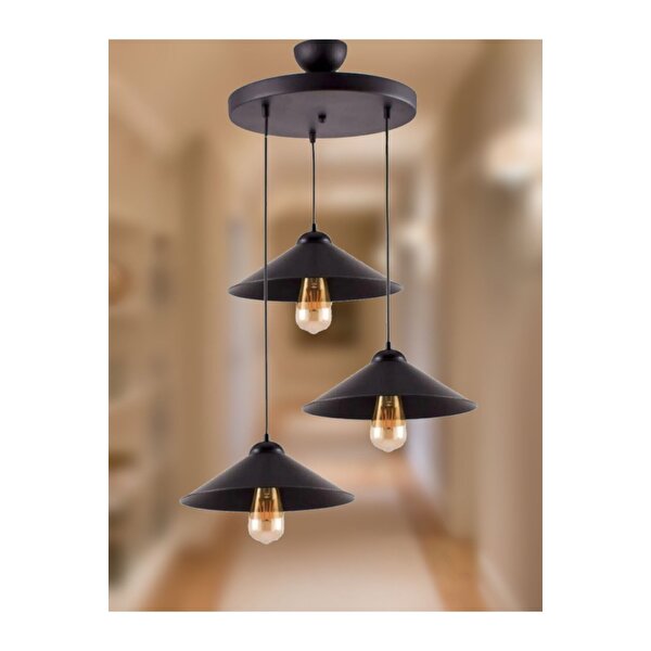 Durulight Duru Aydınlatma Rustik Japon 3'lü Siyah Avize