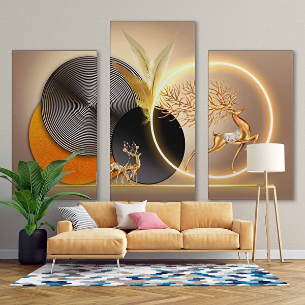Duvarkagidibaski 3 Boyutlu Altın Geyik Desenli Duvar Kağıdı - Dkm803006 250x200 cm