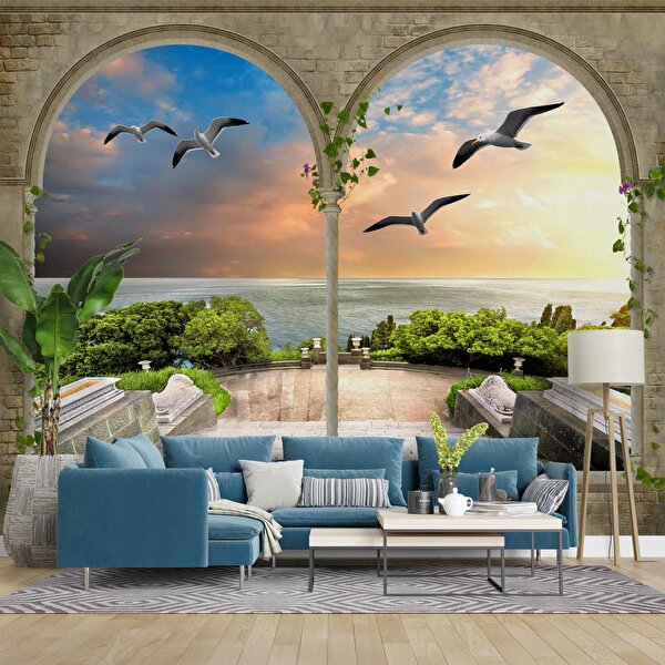 Duvarkagidibaski 3 Boyutlu Sütun Desenli Deniz Manzaralı Duvar Kağıdı Baskı - Dkm-024_85184 225x240 cm