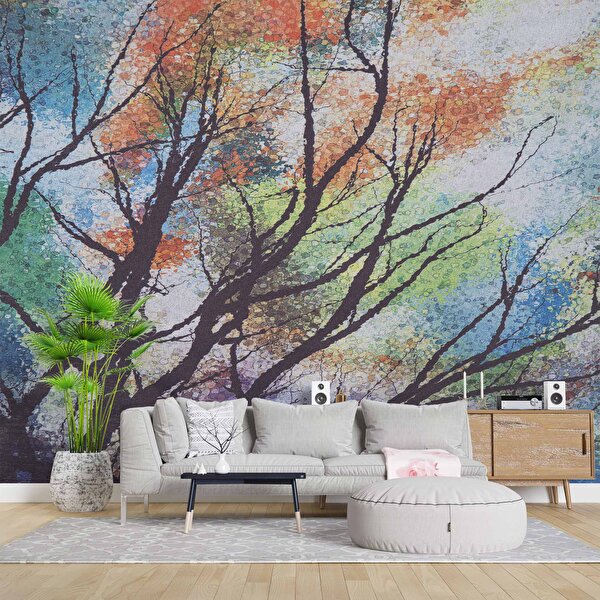 Duvarkagidibaski Ağaç Çizimi Desenli Duvar Kağıdı - Dkm859012 400x200 cm