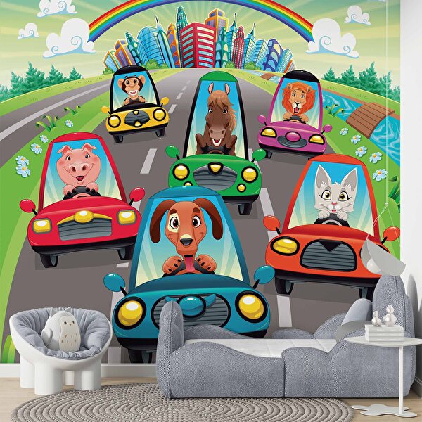 Duvarkagidibaski Araba Yarışları Çocuk Odası Duvar Kağıdı Baskı - Dkm399005 225x200 cm