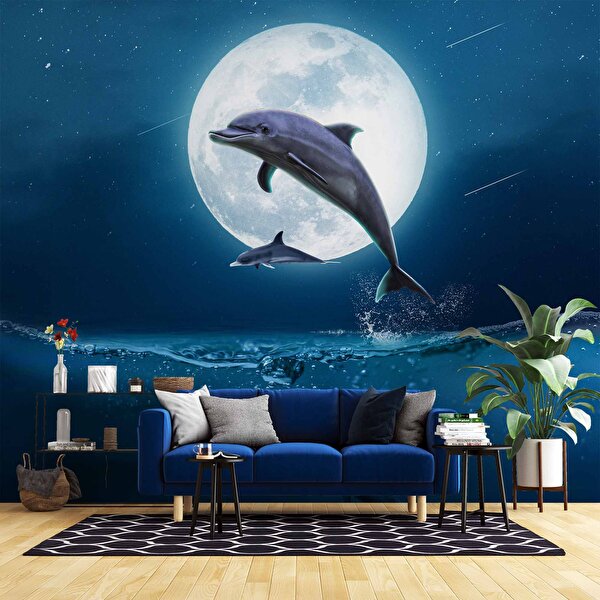 Duvarkagidibaski Ay Ve Yunus Manzaralı Duvar Kağıdı - Dkm917022 900x200 cm