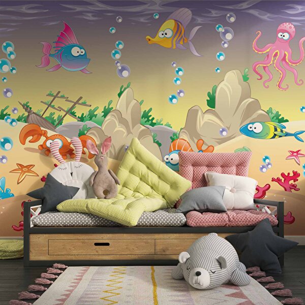 Duvarkagidibaski Balıklar Su Altı Dünyası Çocuk Duvar Duvar Kağıdı Baskı - Dkm382049 275x260 cm