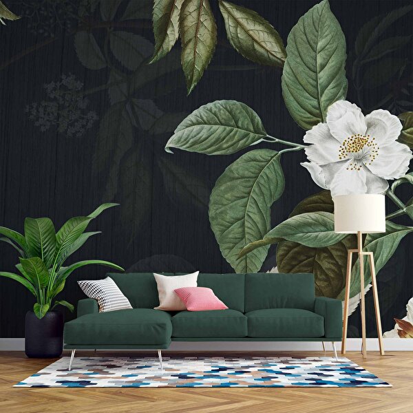 Duvarkagidibaski Beyaz Çiçek Ve Yaprak Desenli Duvar Kağıdı Baskı - Dkm561051 325x260 cm