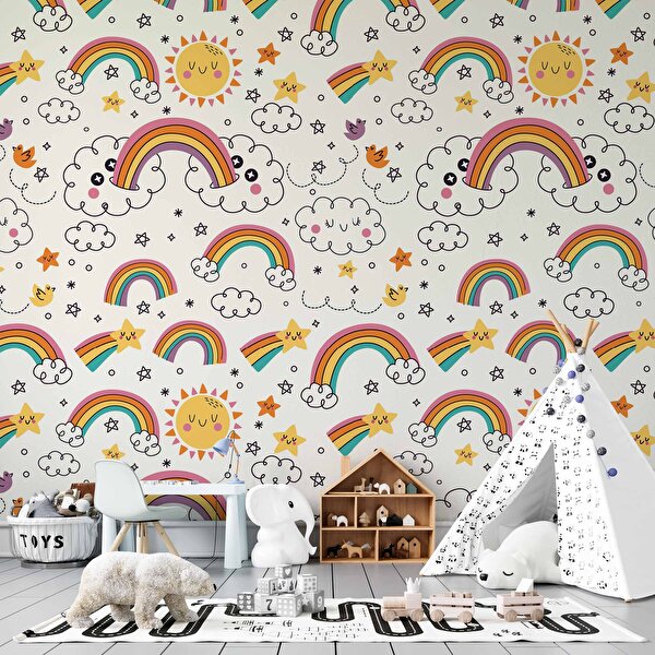 Duvarkagidibaski Bulut-gökkuşağı Temalı Duvar Kağıdı Baskı - Dkm187092 300x300 cm