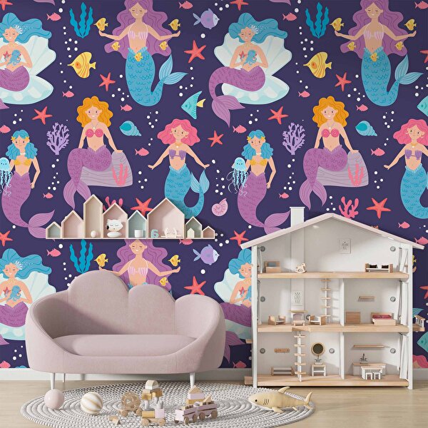 Duvarkagidibaski Deniz Kızı Temalı Çocuk Odası Duvar Kağıdı Baskı - Dkm185039 550x240 cm