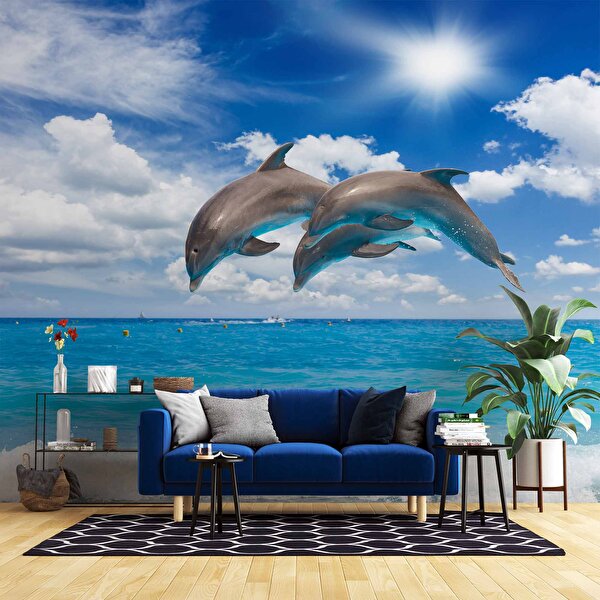 Duvarkagidibaski Deniz Ve Yunus Balığı Dansı Manzaralı Duvar Kağıdı - Dkm847027 250x240 cm