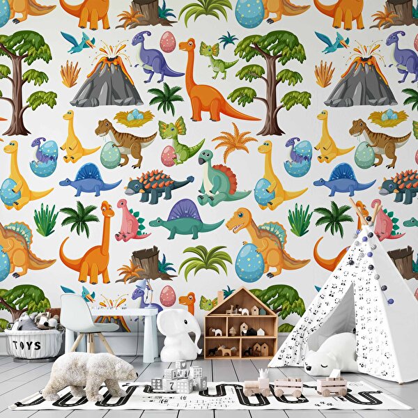 Duvarkagidibaski Dinazor Desenli Çocuk Odası Duvar Kağıdı Baskı - Dkm181058 500x260 cm