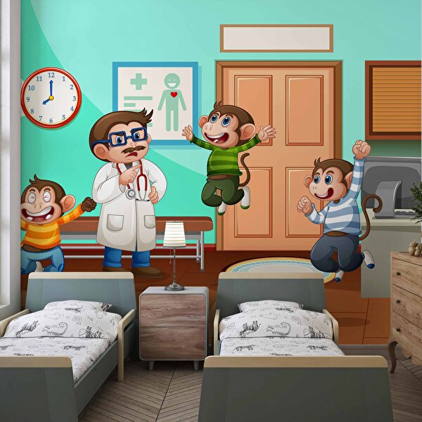Duvarkagidibaski Doktor Ve Maymun Desenli Çocuk Oyun Odası Duvar Kağıdı Baskı - Dkm190022 900x200 cm