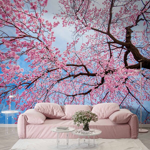 Duvarkagidibaski Gökyüzü Ve Pembe Ağaç Manzaralı Duvar Kağıdı - Dkm706087 150x300 cm