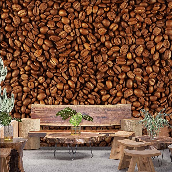 Duvarkagidibaski Kahve Çekirdekleri Temalı Cafe Duvar Kağıdı Baskı - Dkb274119 450x315 cm