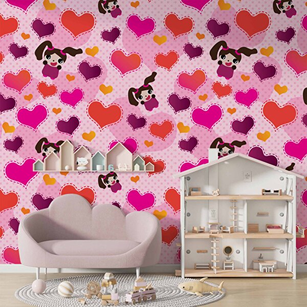 Duvarkagidibaski Kalpli Pembe Çocuk Duvar Duvar Kağıdı Baskı - Dkm379044 100x260 cm