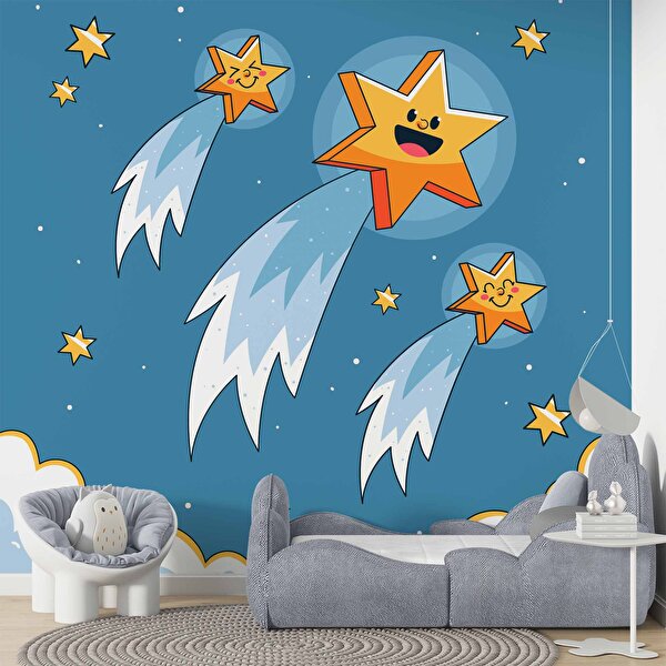 Duvarkagidibaski Kayan Yıldız Temalı Çocuk Odası Duvar Kağıdı Baskı - Dkm175041 700x240 cm