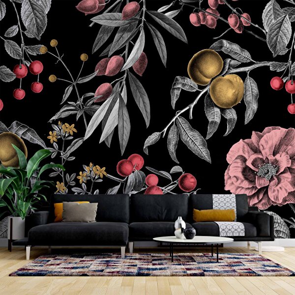Duvarkagidibaski Meyve Ve Yaprak Desenli Duvar Kağıdı Baskı - Dkm554035 450x240 cm