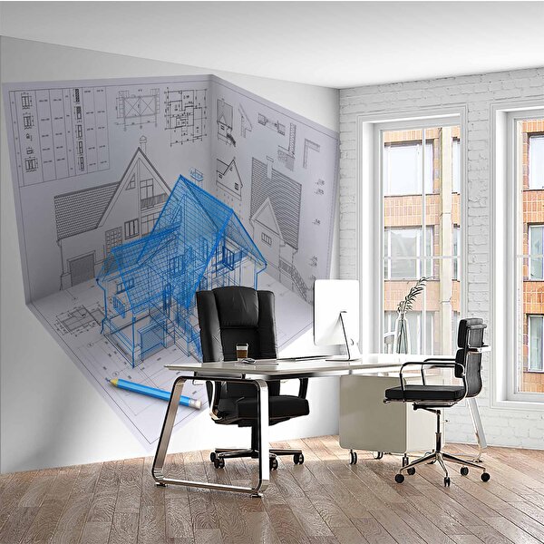Duvarkagidibaski Mimari Ev Çizimli Gayrimenkul Emlak Ve Gayrimenkul Duvar Kağıdı Baskı - Dkm342015 475x200 cm