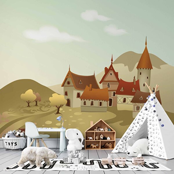 Duvarkagidibaski Minik Kasaba Çocuk Odası Duvar Kağıdı Baskı - Dkm429004 200x200 cm