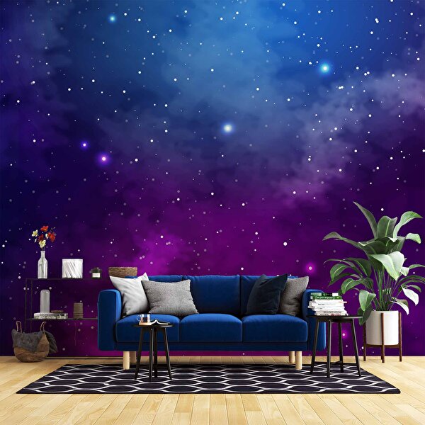 Duvarkagidibaski Mor Ve Mavi Galaksi, Yıldızlar Manzaralı Duvar Kağıdı Baskı - Dkm564068 225x280 cm