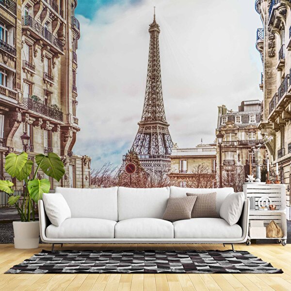 Duvarkagidibaski Paris Sokak Ve Eyfel Kulesi Manzaralı Duvar Kağıdı Baskı - Dkm552092 300x300 cm