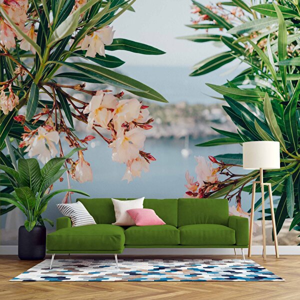 Duvarkagidibaski Pembe Çiçek Ve Deniz Manzaralı Duvar Kağıdı - Dkm935061 600x260 cm