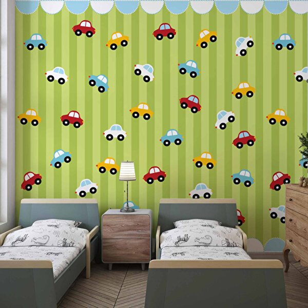 Duvarkagidibaski Renkli Arabalar Çocuk Odası Duvar Kağıdı Baskı - Dkm403068 225x280 cm