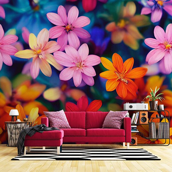 Duvarkagidibaski Renkli Çiçek Desenli Duvar Kağıdı Baskı - Dkm515082 600x280 cm