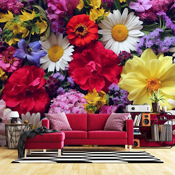 Duvarkagidibaski Renkli Çiçek Temalı Duvar Kağıdı Baskı - Dkm517005 225x200 cm