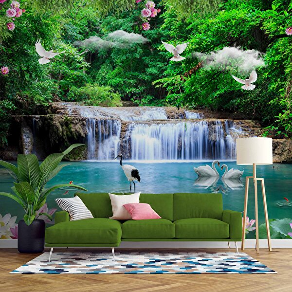 Duvarkagidibaski Şelale, Göl Ve Orman Manzaralı Duvar Kağıdı Baskı - Dkm083112 275x315 cm
