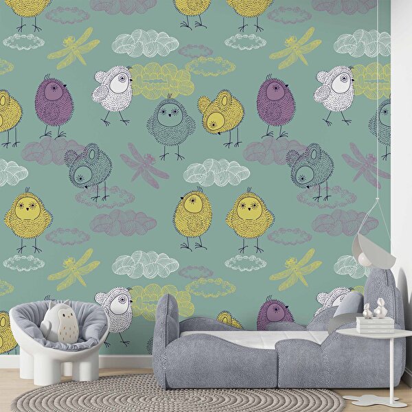 Duvarkagidibaski Şirin Kuş Desenli Çocuk Odası Duvar Kağıdı Baskı - Dkm393040 600x240 cm