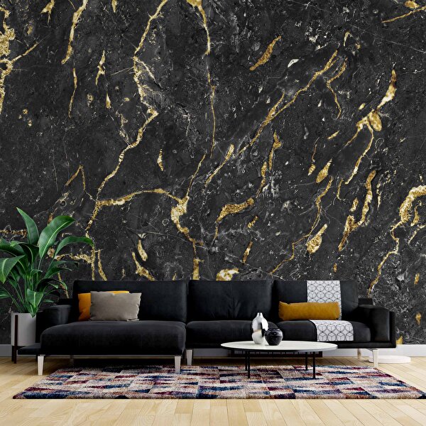Duvarkagidibaski Siyah Mermer Desenli Duvar Kağıdı - Dkm858056 450x260 cm