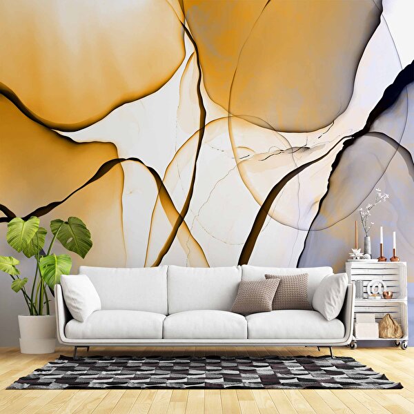 Duvarkagidibaski Turuncu Mavi Boya Desenli Duvar Kağıdı - Dkm732011 375x200 cm