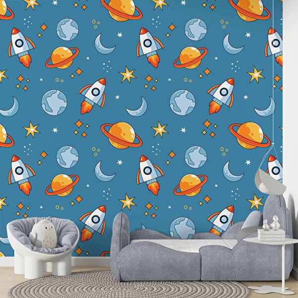 Duvarkagidibaski Uzay Temalı Çocuk Odası Duvar Kağıdı Baskı - Dkm171108 150x315 cm