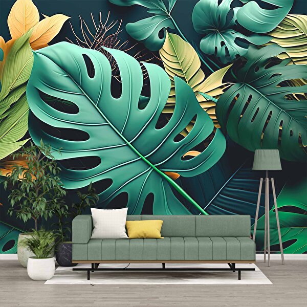 Duvarkagidibaski Yeşil Yaprak Desenli Duvar Kağıdı Baskı - Dkm118071 300x280 cm