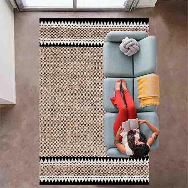 Eco Concept Dijital Baskı Hasır Desen Halı, İskandinav Halı, Salon Halısı, Yıkanabilir Halı, Kaymaz Taban, Mutfak Halısı, Yolluk, Ev Dekorasyonu 120x180 cm