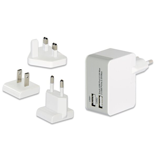 ednet Evrensel (EU/UK/US) Seyahat Şarj Seti , 2 x USB Port