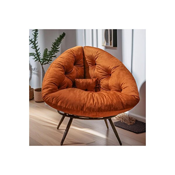Elite Milano Modern Tekli Berjer – Ergonomik Dinlenme Ve Okuma Koltuğu | Lüks Tay Tüyü Döşeme Turuncu