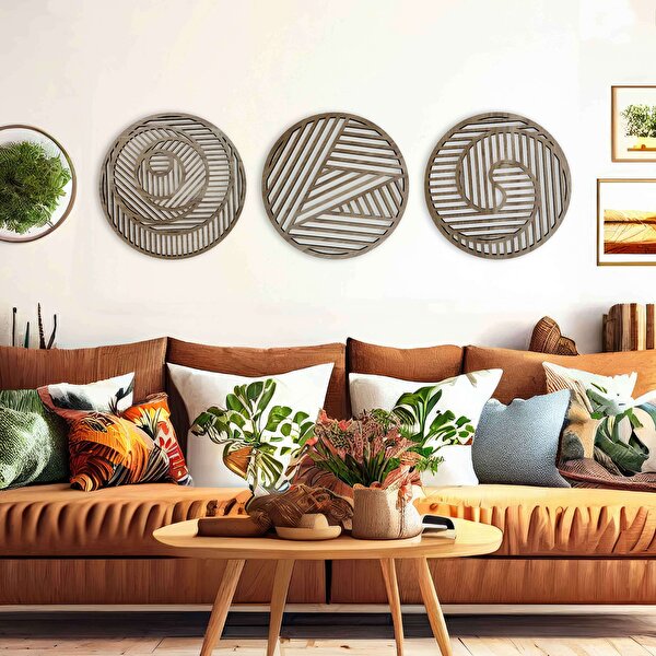 Geometrik Desen Ahşap Duvar Tablosu.mdf Malzemeden Mostar Renginde Üretilmiştir. 3'lü Set Olarak Gönderilir. Toplam Ölçü 28x84 Cm.