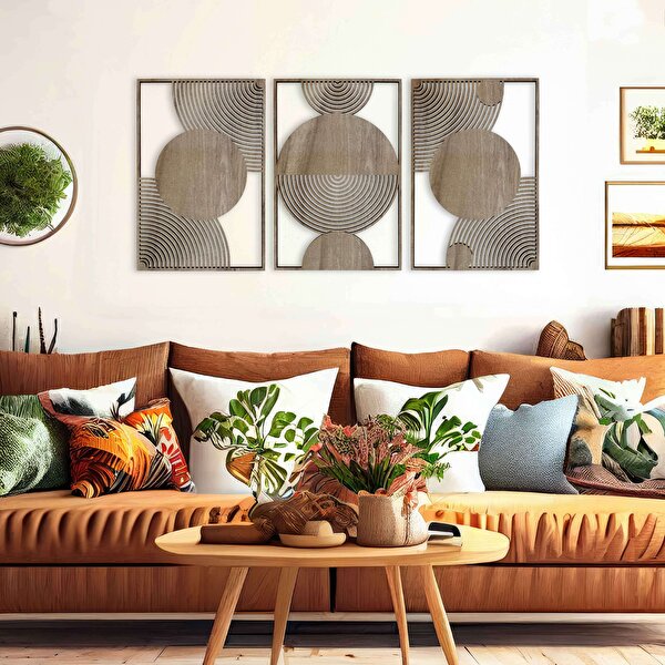 Modern Ahşap Duvar Tablosu.mdf Malzemeden Mostar Renginde Üretilmiştir. 3'lü Set Olarak Gönderilir. Toplam Ölçü 28x84 Cm.