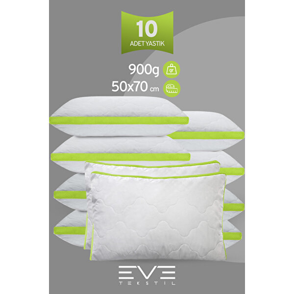Eve Tekstil 10 Adet Klimax Yeşil Serisi Kılıflı Fermuarlı Klimali Antialerjik Silikon Nano Elyaf Yastık 50x70cm