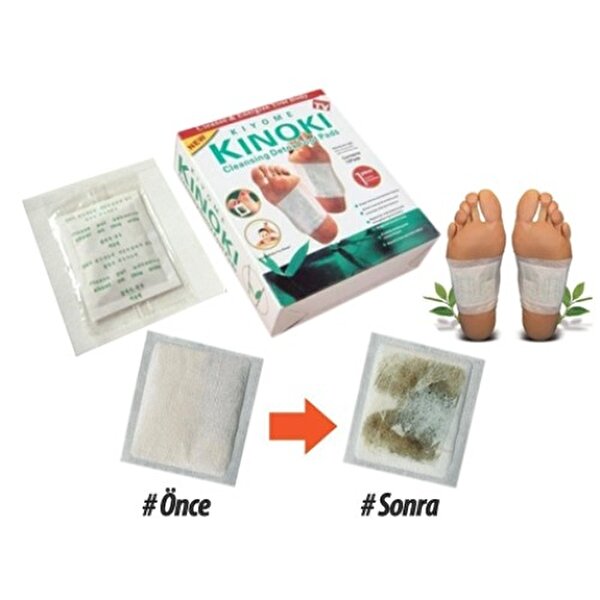 Detox Bandı ile hava kirliliği, sigara, katkılı gıda maddeleri, kimyasallar ve radyasyondan maruz kaldığımız toksinlerden arının!  Bitkisel malzemelerden üretilen Detoks Bandı vücudunuzu yeniler ve enerjinizi arttırmanıza yardımcı olur. Vücuttaki toksinleri ayak tabanından çeker alır. Sabah uyandığınızda vücudunuzdan çıkan sıvı siyah maddelere inanamayacaksınız. Ürün Özellikleri:     Vücudun salgıladığı zehirli maddelerin emilmesine     Vücuttaki küçük ağrıların hafifletilmesine     Bağışıklık sistemi üzerindeki yükün azaltılmasına     Lenfatik Sistemin doğal yollardan temizlenmesine     Normal kan dolaşımının desteklenmesine     Vücuttaki şişliklerin azaltılmasına     Ağır metallerin vücuttan atılmasına     Uyku kalitesinin yükseltilmesine     Genel sağlık durumunun/düzeyinin iyileştirilmesine yardımcı olur. Ürün Kullanımı: Genel vücut detoksu için her ayak tabanınızın ortasına bir bant uygulayınız. Bu uygulamaya bantların üzerinde kalıntı azalana kadar devam ediniz. Vücutta en fazla detokslanmaya ihtiyacı olan kısmı bulmak için ayak tabanının topuk kısmına, orta kısmına ve ayak tabanınızın ön kısmına olmak üzere 3 adet bant uygulaması önerilir. Bu uygulama sonrası vücudun detokslamadan en fazla fayda sağlayan bölgesi bantların üzerindeki artık miktarlarından anlaşılabilir. Böylece her iki ayak tabanınızda en yoğun artık görülen bandın uygulandığı bölgeye artıklar azalıncaya kadar uygulama yapmayı sürdürebilirsiniz. Kişilerin fiziksel durumuna ve toksisite durumuna bağlı olarak hemen sonuç alınmayabilir. Uygulamaya en az yedi gün boyunca devam edildiği taktirde vücuttan atılan toksin miktarına bağlı olarak bantlardaki artık renginin kahverengiden açık gri renge dönüştüğü görülür. Paket İçeriği: 10 Adet Detox Ayak Bandı