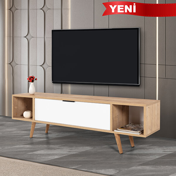 Evmo 3628 Mesir 160 Cm ( Ahşap Ayakli , Metal Kulplu ) Tv Ünitesi , Safir - Beyaz , Tv Sehpası , Salon Beyaz-Safir