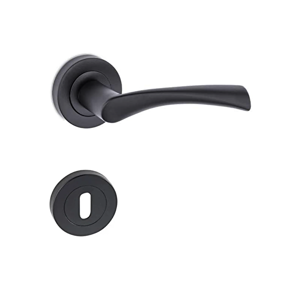 EYMEN YAPI Hira Mina Alüminyum Yuvarlak Rozetli Kapı Kolu Mat Siyah Oda