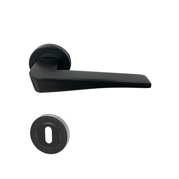 EYMEN YAPI Hira Yasmin Alüminyum Yuvarlak Rozetli Kapı Kolu Mat Siyah Oda