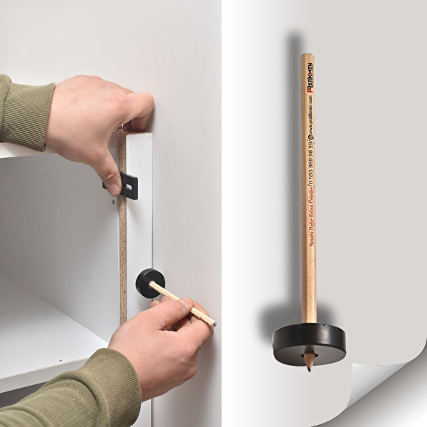 Pratikmen Açı Çizgi Kalemi ile duvara sabitlemek istediğiniz mobilya kısımları için rulmanlı kolay dönebilen  işaretleyici sayesinde sapma yaşamadan kolay bir şekilde kesim yerini belirleyebilirsiniz.Pervaz çizimlerinde büyük kolaylık sağlar.