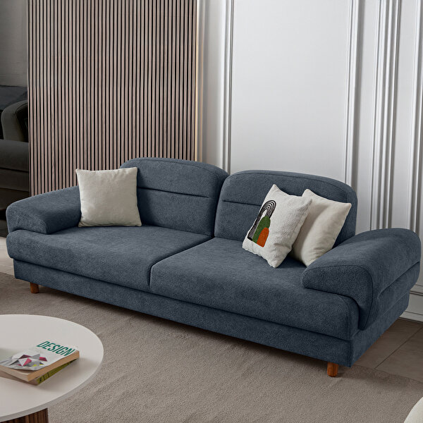 Eymense Lizbon Yataklı Sandıklı Üçlü Koltuk Mavi
