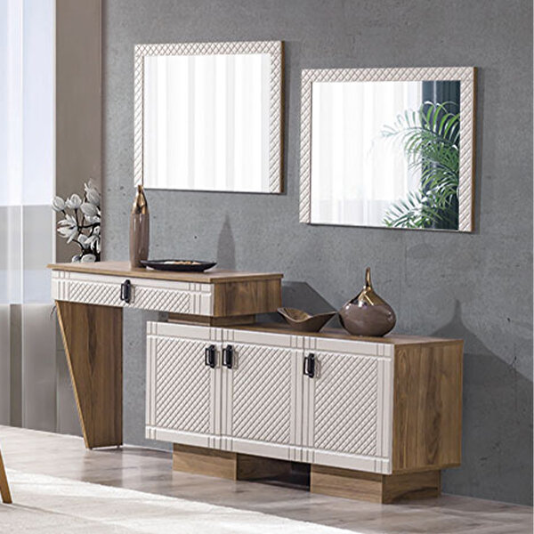 Ürün İçeriği • 1 Adet Aynalı Konsol Teknik Özellikler • Kapak Malzeme: MDF • Gövde Malzeme: Suntalam • Garanti Süresi: 2 Yıl • Kalite Belgesi: Avrupa TÜV CERT ISO 9001 Standartlarına Uygun Üretim Ürün Ölçüleri Konsol • Genişlik: 180 cm • Derinlik: 41 cm • Yükseklik: 78 cm Konsol Ayna: • Genişlik: 54 cm • Derinlik: 2 cm • Yükseklik: 80 cm Temizlik ve Bakım • Sabunlu nemli bir bezle silinmeli, ardından kuru bezle kurulanmalıdır. • Ürün leke tutmaz ve dayanıklı malzemeden üretilmiştir. • Kimyasal temizlik ürünleri kullanılması önerilmez, çünkü bu tür ürünler malzemenin ömrünü kısaltabilir. Teslimat ve Kurulum Bilgileri • Ürünler, kargo firmalarının genel uygulamaları gereği daire kapısına kadar teslim edilir. • Köylere teslimat yapılmamaktadır. • Şehir merkezlerinden uzak bölgelerde teslimat sorunları yaşanabilir; sipariş öncesi satıcıyla iletişime geçilmesi tavsiye edilir. • Kurulum hizmeti dahil değildir. Kurulum müşteriye aittir. • Ürünler, kolay montaj sağlayan özel paketleme ve bağlantı aparatlarıyla gönderilir. • Teslimat sırasında hasar tespit edilirse mutlaka tutanak tutulmalıdır; aksi halde iade/değişim işlemi yapılamaz. Garanti Bilgisi • Ürün 2 yıl garanti kapsamındadır ve üretim ile işçilik hatalarını kapsar. • Daha uzun ömürlü kullanım için yüksek kalite standartlarında üretilmiştir.